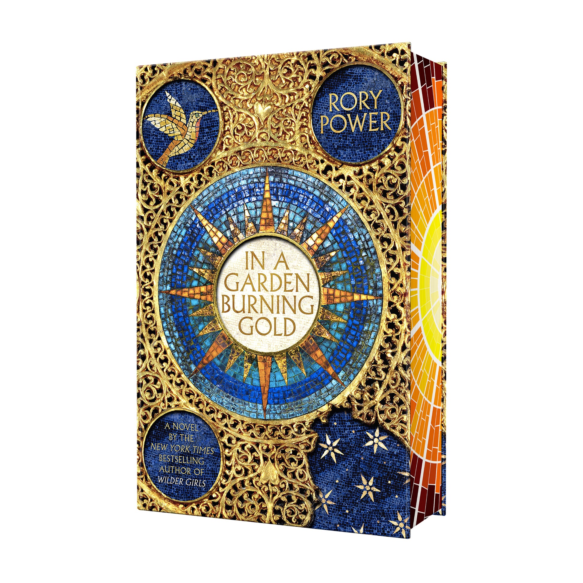 This customised hardcover edition of ”In a Garden Burning Gold by Rory Power” will come with this gorgeous design on the front, and plain coloured edges on the top and bottom.