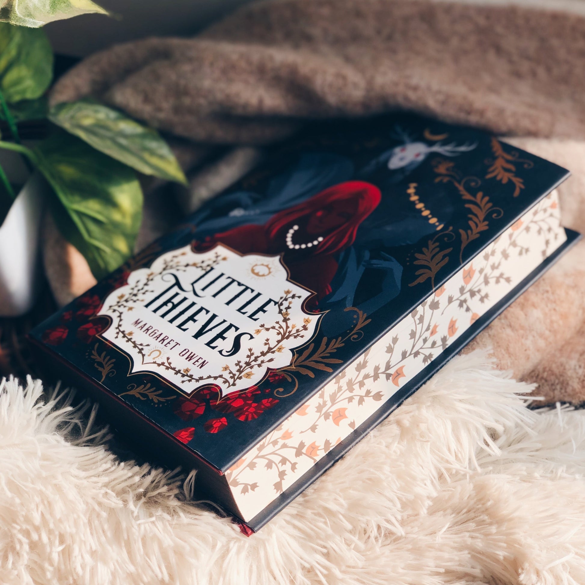 This customised edition of ”Little Thieves by Margaret Owen” will come with this gorgeous design on the front, and plain coloured edges on the top and bottom.