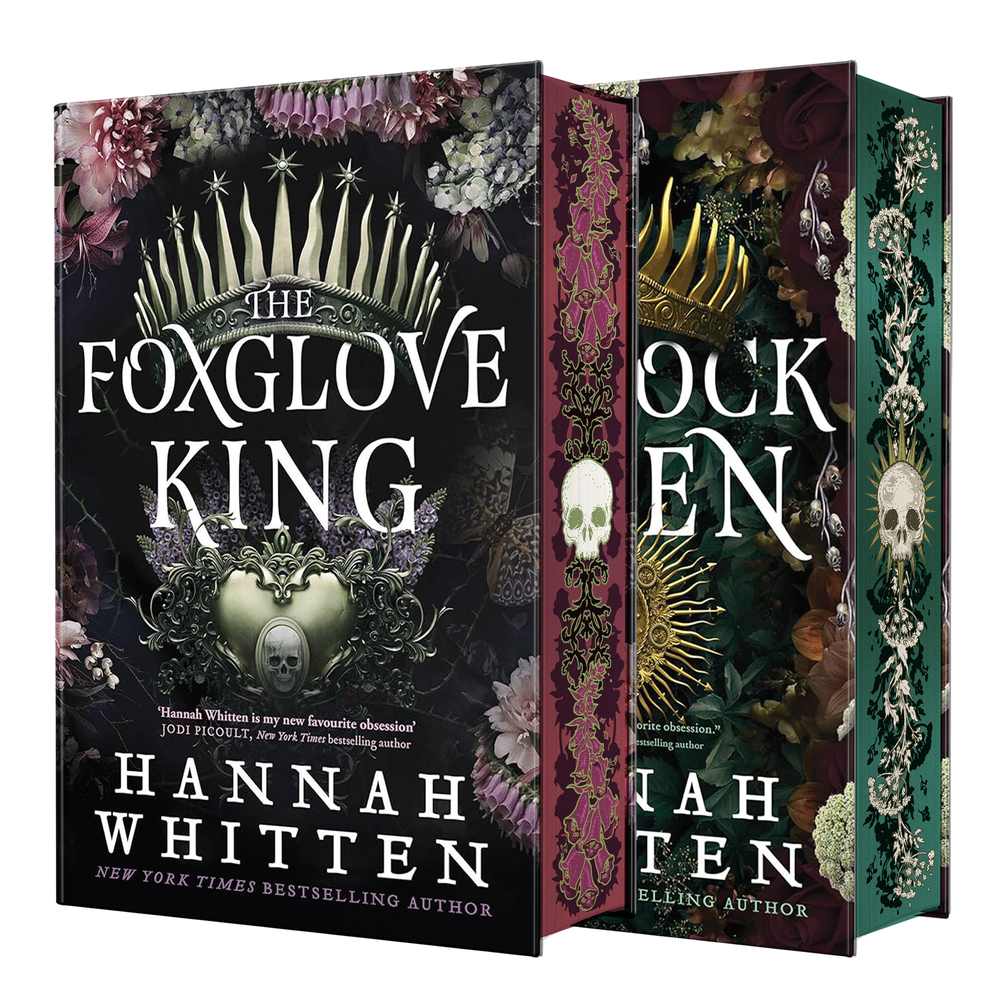 These gorgeous customised editions of The Foxglove King and The Hemlock Queen by Hannah Whitten, will come with these stunning designs on the front and solid edges on the top and bottom. ONLY available to purchase as a set.