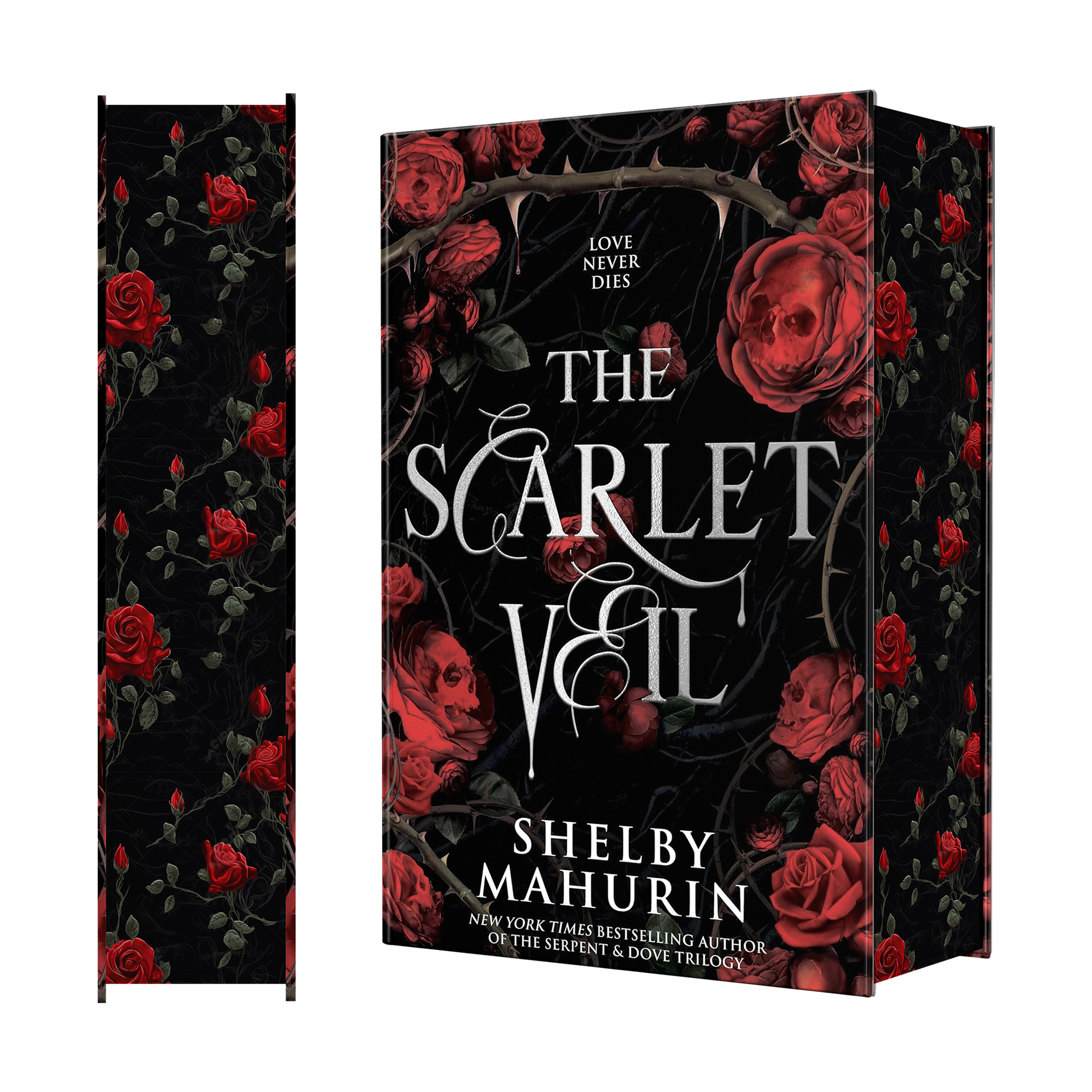 This gorgeous customised hardcover edition set of The Scarlet Veil by Shelby Mahurin, will come with this stunning design on the front and solid edges on the top and bottom. The future books IF BLACK, will have a seamless design continuing from this one.